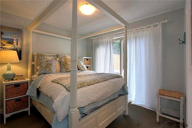 This large primary bedroom is situated on the top floor of the cottage and has a walk-in closet.